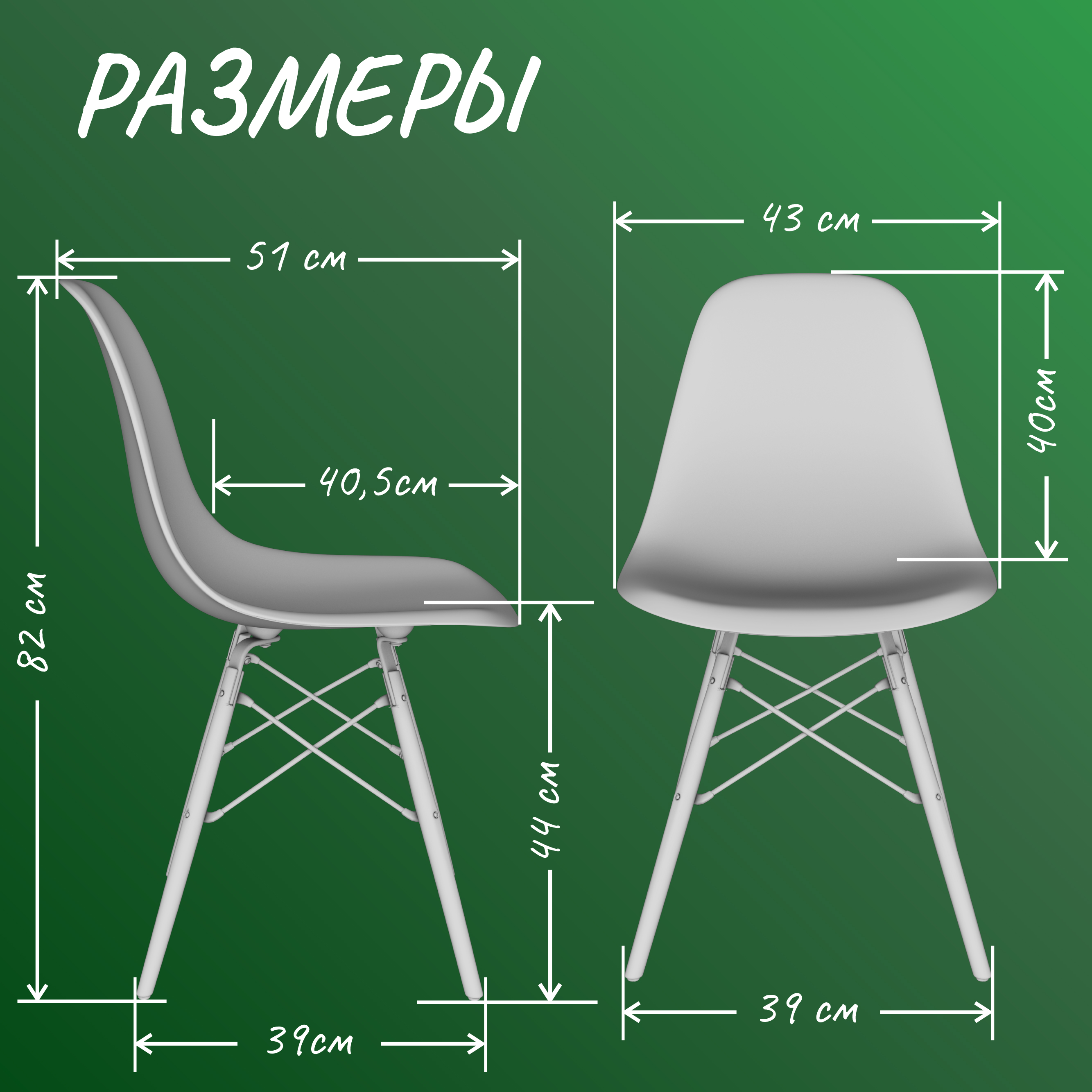 Размеры стула составляют 55 см в ширину, 46,5 см в глубину и 82 см в высоту. Это делает его удобным для использования на кухне, позволяя разместить на нем большое количество людей.